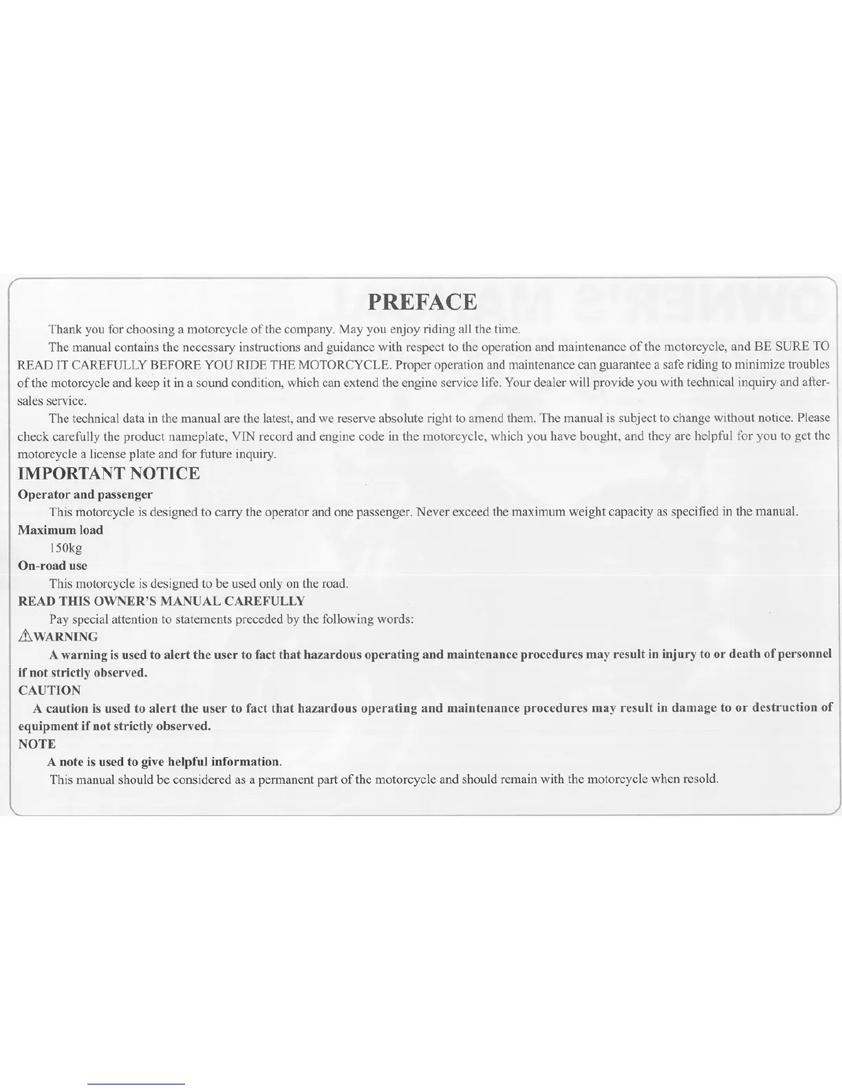 Fekon 150-14 - Important Notice; Maximum Load; On-Road Use