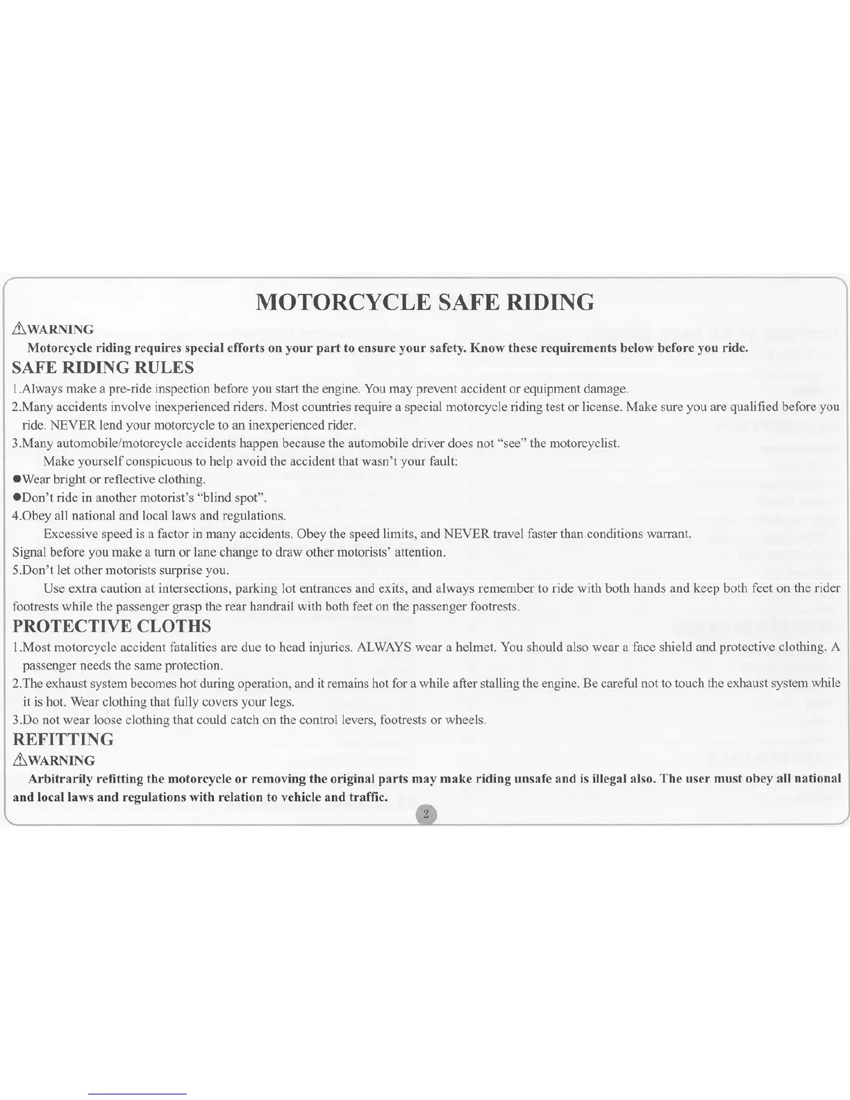 Fekon 150-14 - Motorcycle Safe Riding; Safe Riding Rules; Protective Clothing; Refitting Precautions