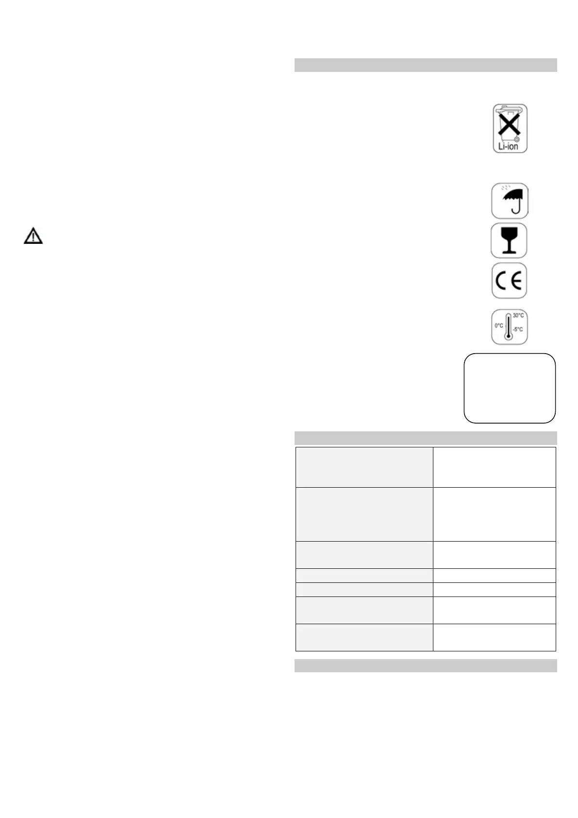 • Never store battery 09 with a capacity less than 50%.