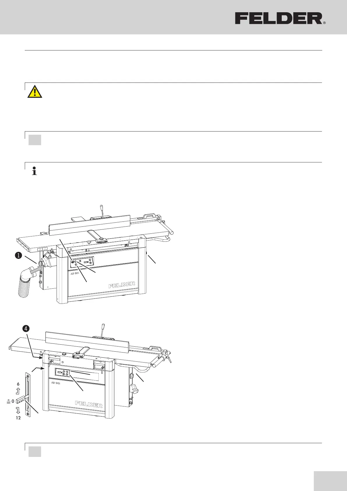 The planer arbor can only run when the joiner tables are closed or the extractor hood is tilted up.