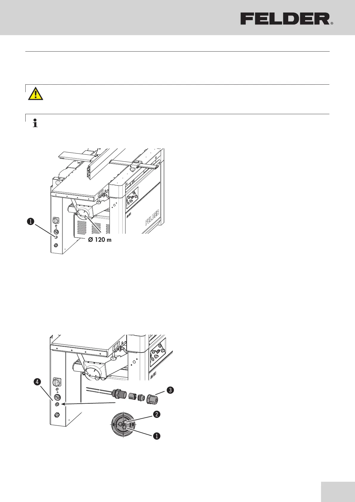 Warning! Risk of injury! The dust extraction hose must be non-flammable and must not conduct electricity! For