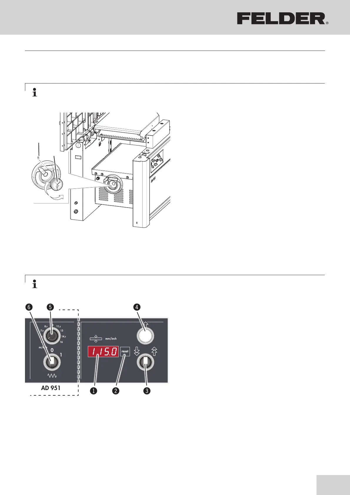 Felder AD 951 - 8.7 Прилагодување на висината на масата за деблање со рачниот волан!; 8.8 “Power-Drive“ опрема