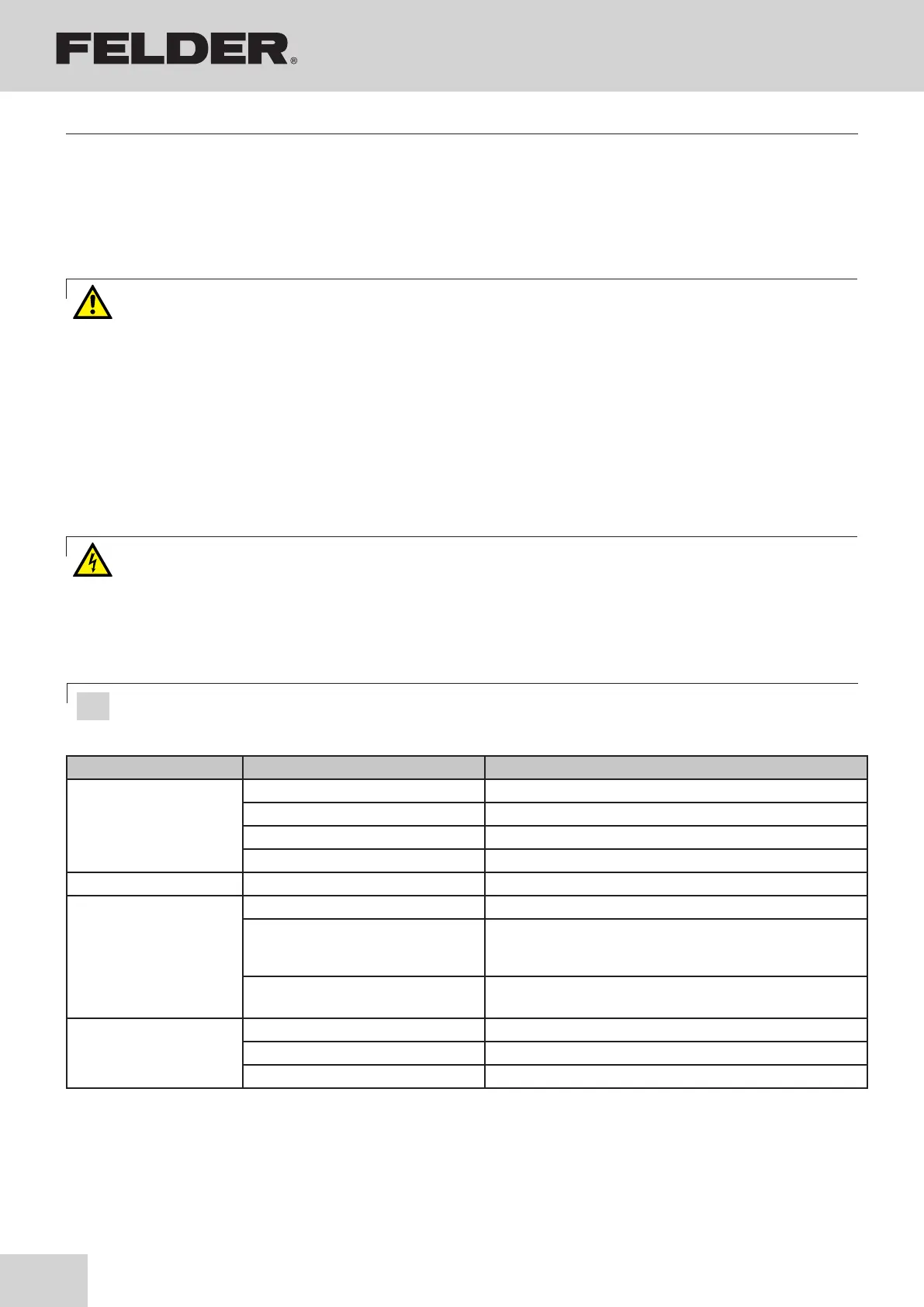 Please contact the FELDER KG service department, if problems or a fault- function should occur!