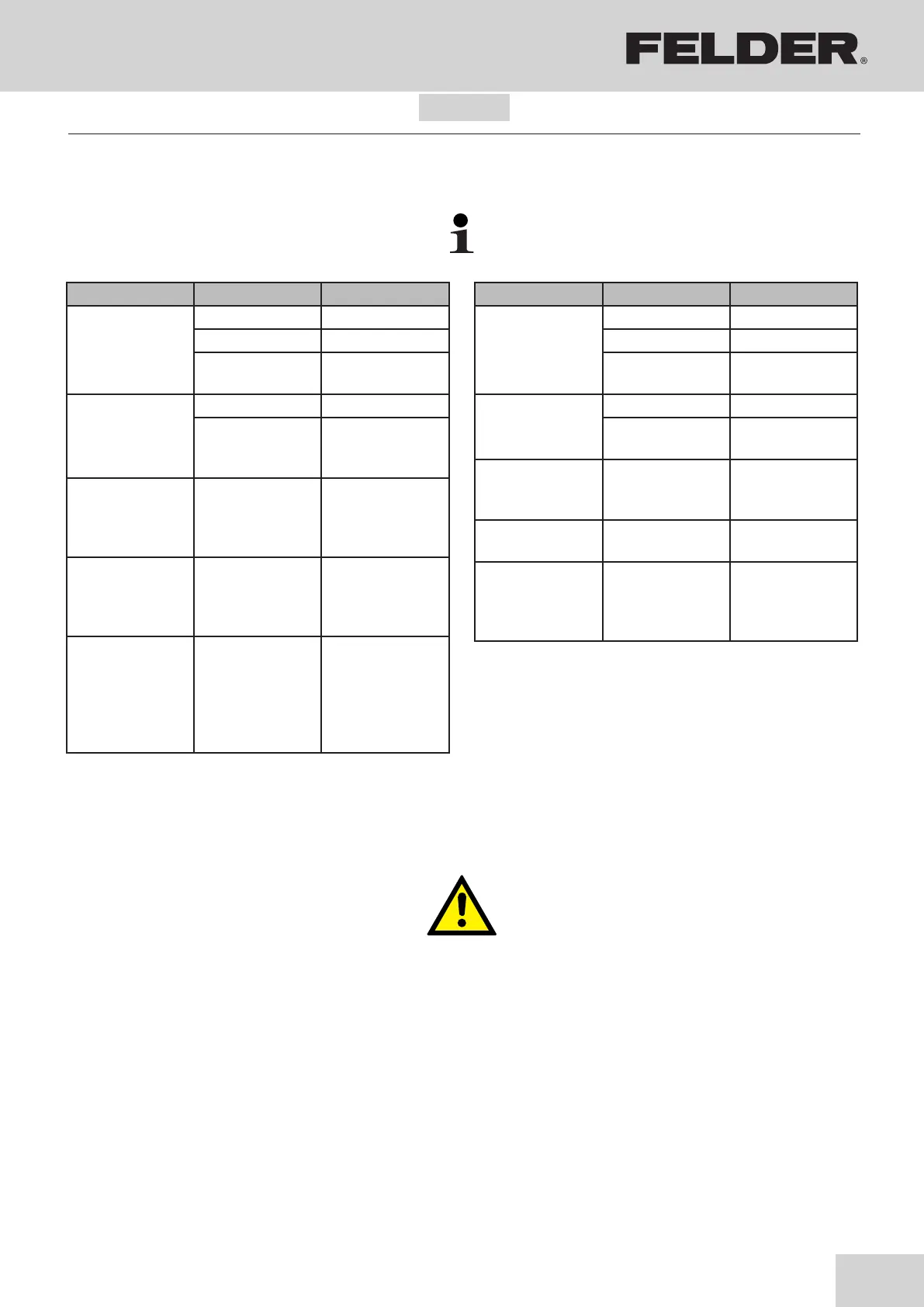 A se folosi numai piese de schimb originale FELDER