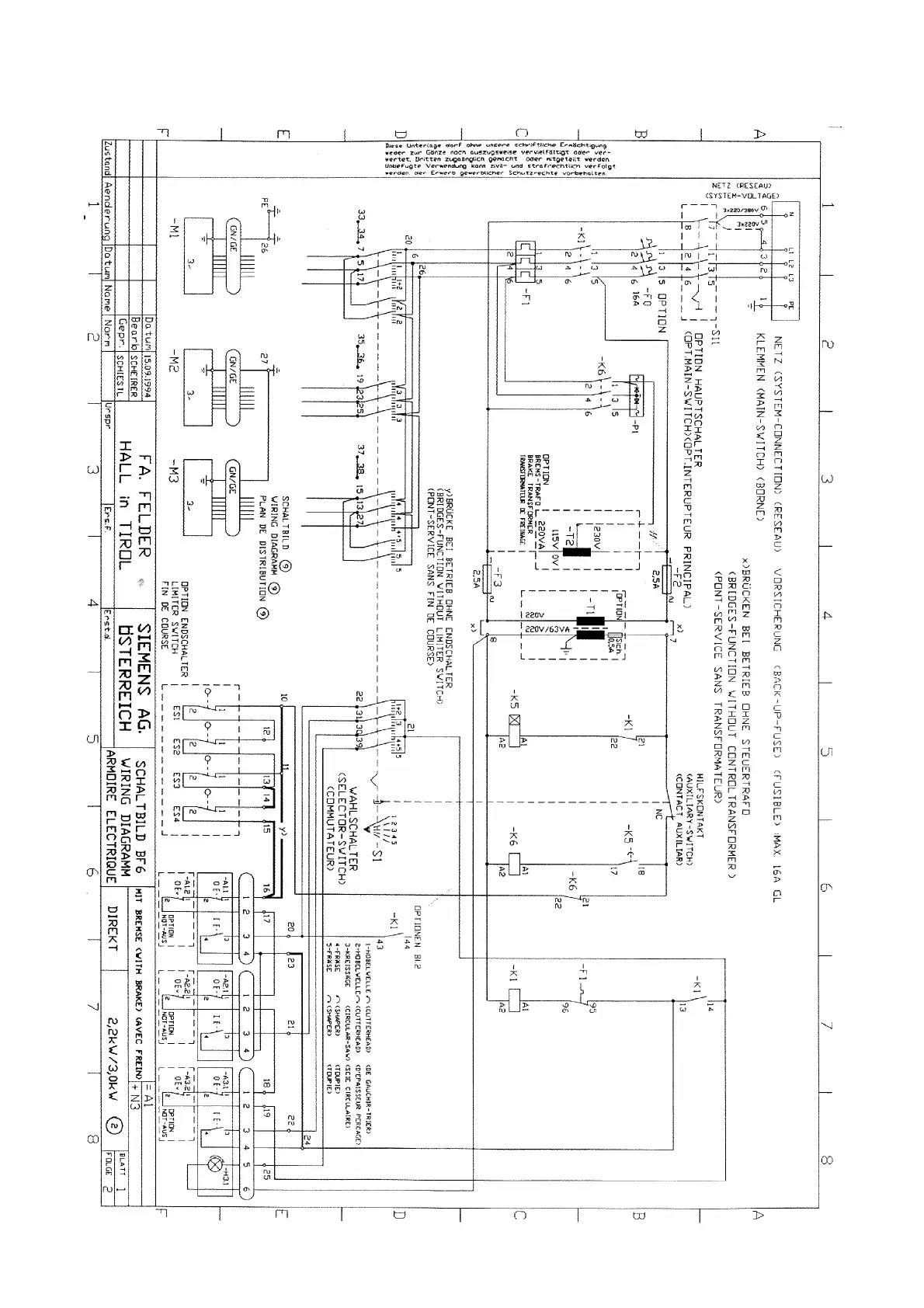 3x380 V oder 3x220V, 3 (2) Motore