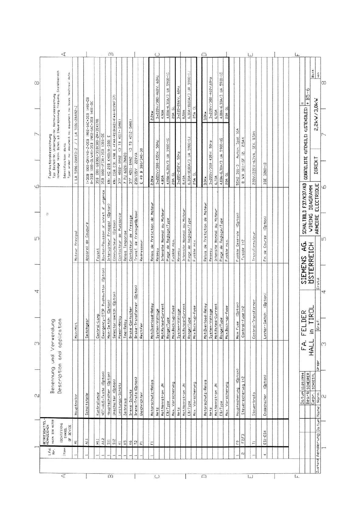 Geräteliste Schaltplan Nr. 5