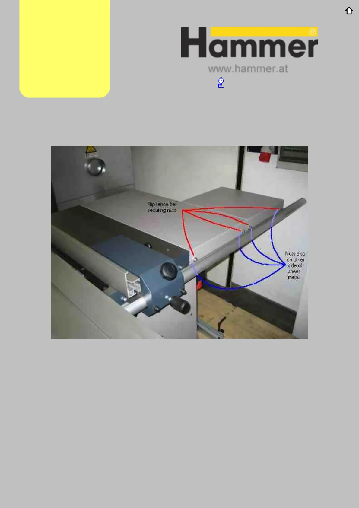 After adjusting the tables, the nuts can be re-tightenend. Check that the rip fence