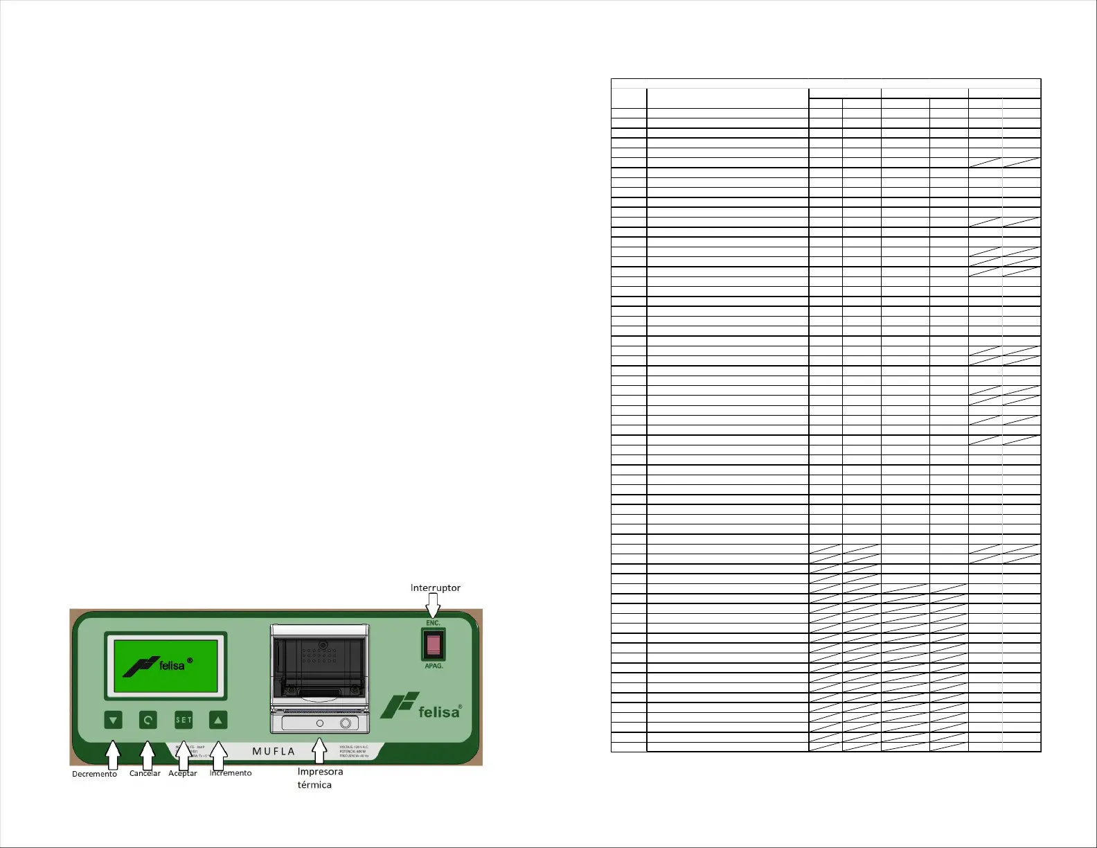 Decremento: Decrementa el parámetro seleccionado.