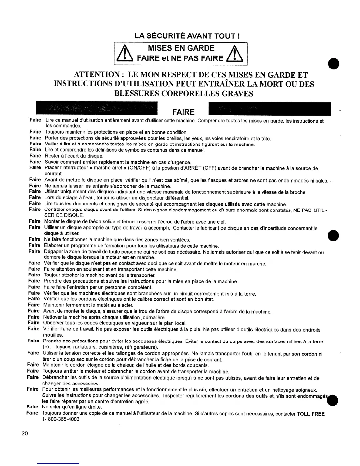 Felker TM-1HT - Safety: Faire et Ne Pas Faire; Faire (Do)