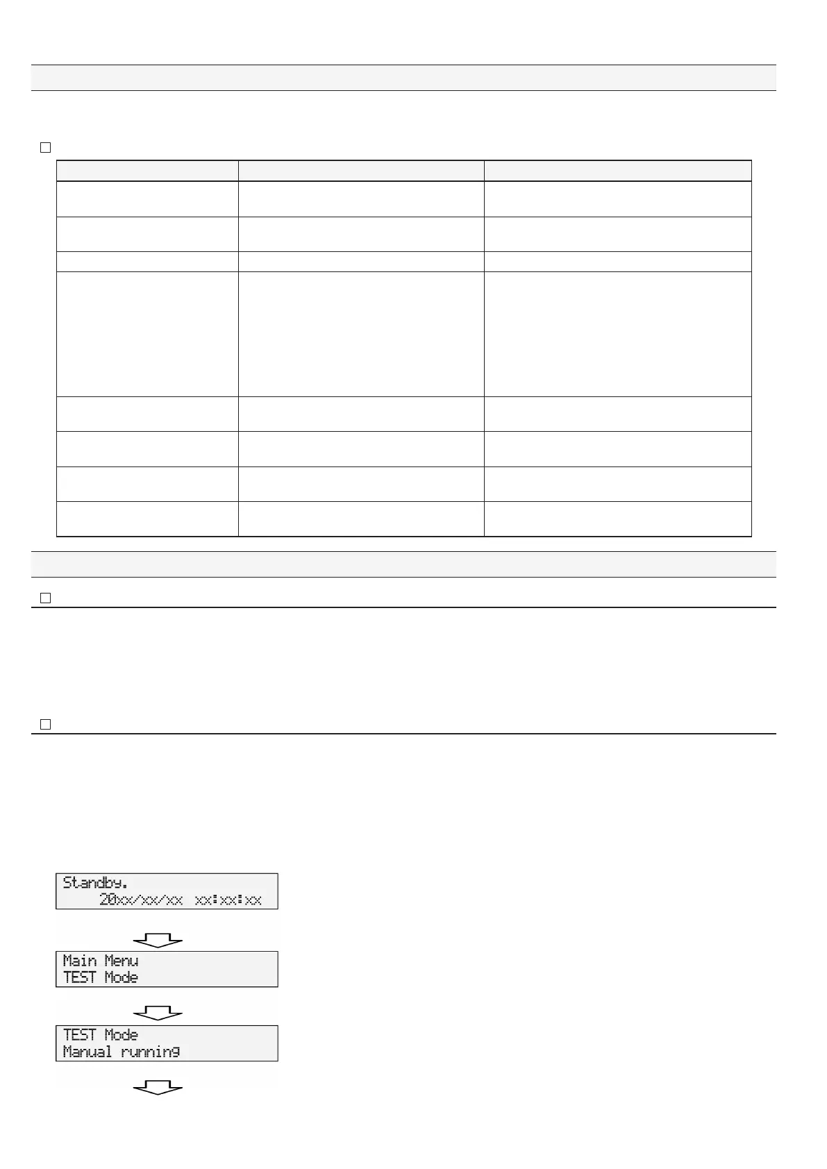 ● To execute a testing function, keep on pressing "Esc" for 2 seconds or longer in the standby state. (The testing function is not enabled while