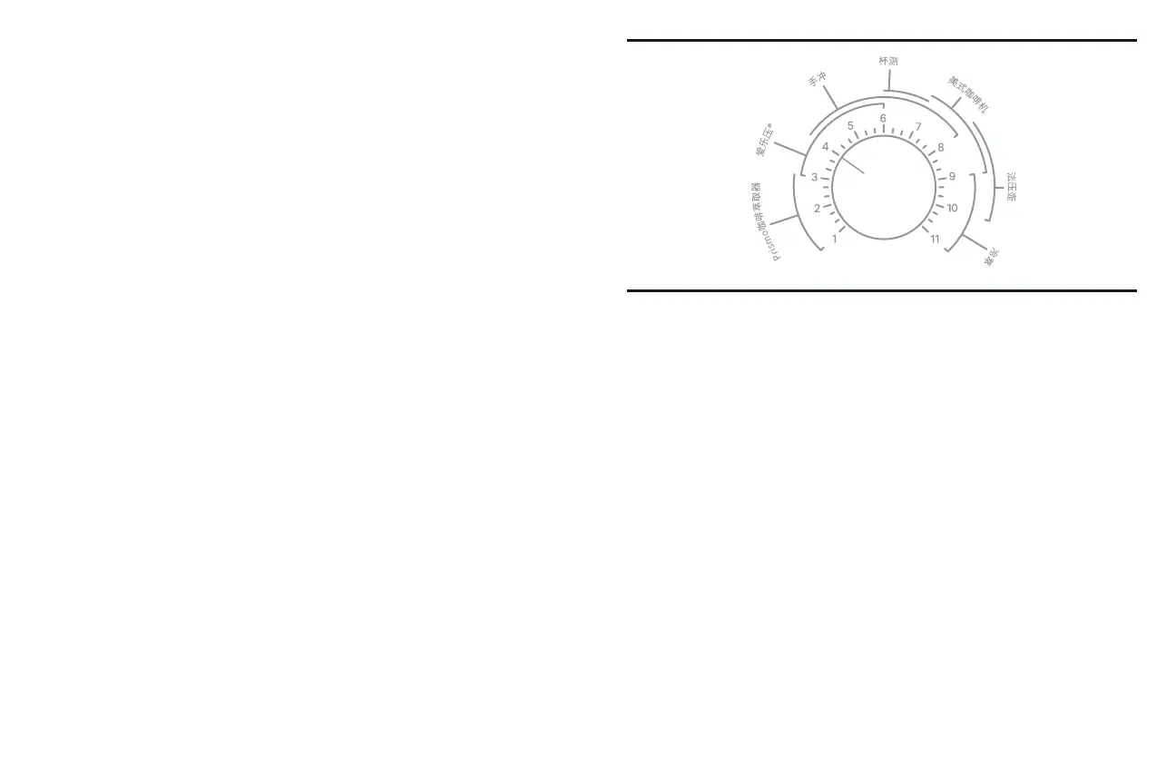 1. 把研磨指示盘向左或向右旋转以选择研磨尺寸(1=精细,11=粗糙)。