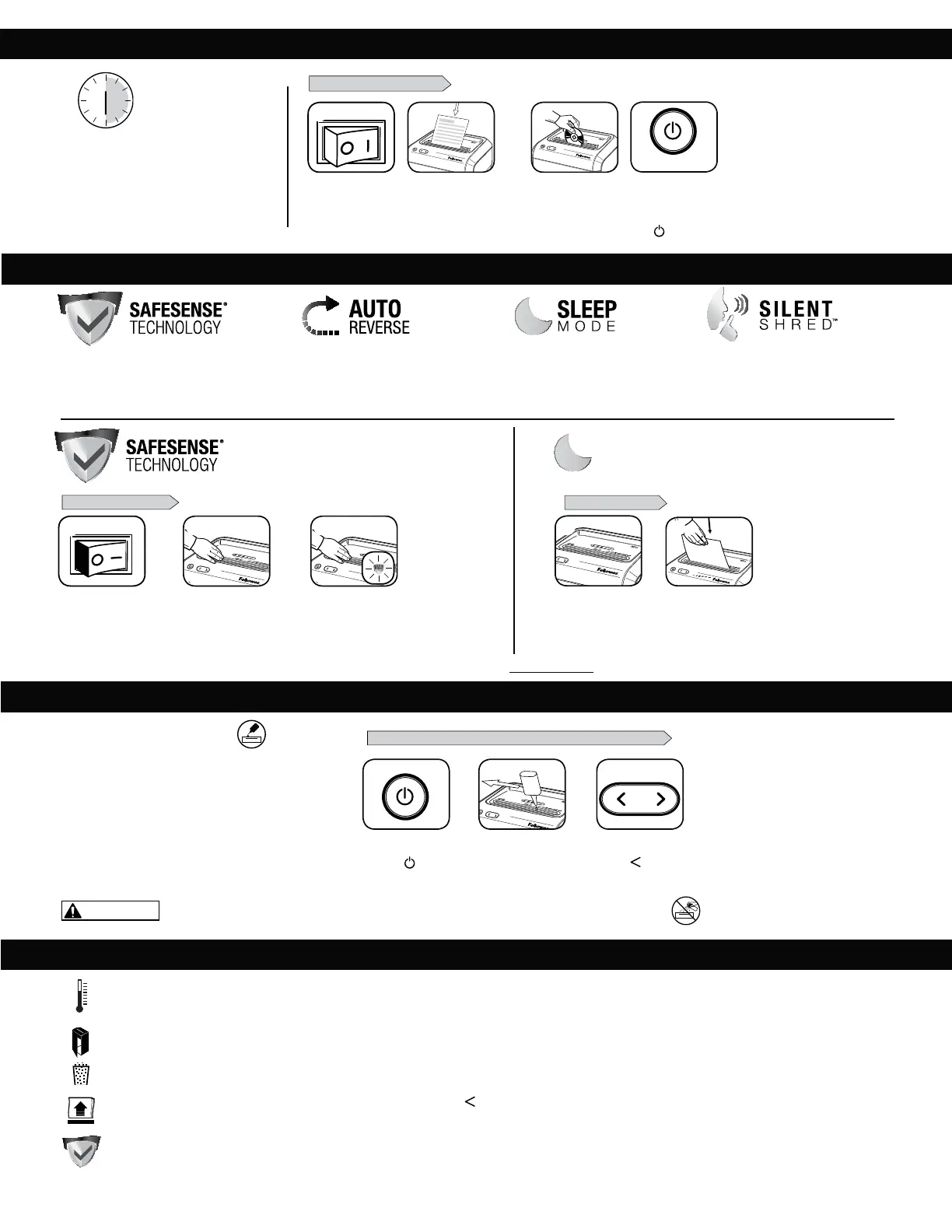 Kontrolné svetielko funkcie SafeSense®: Ak priblížite ruky príliš blízko ku vstupnému otvoru na papier, rozsvieti sa kontrolné svetielko funkcie SafeSense® a skartovač zastaví skartovanie.