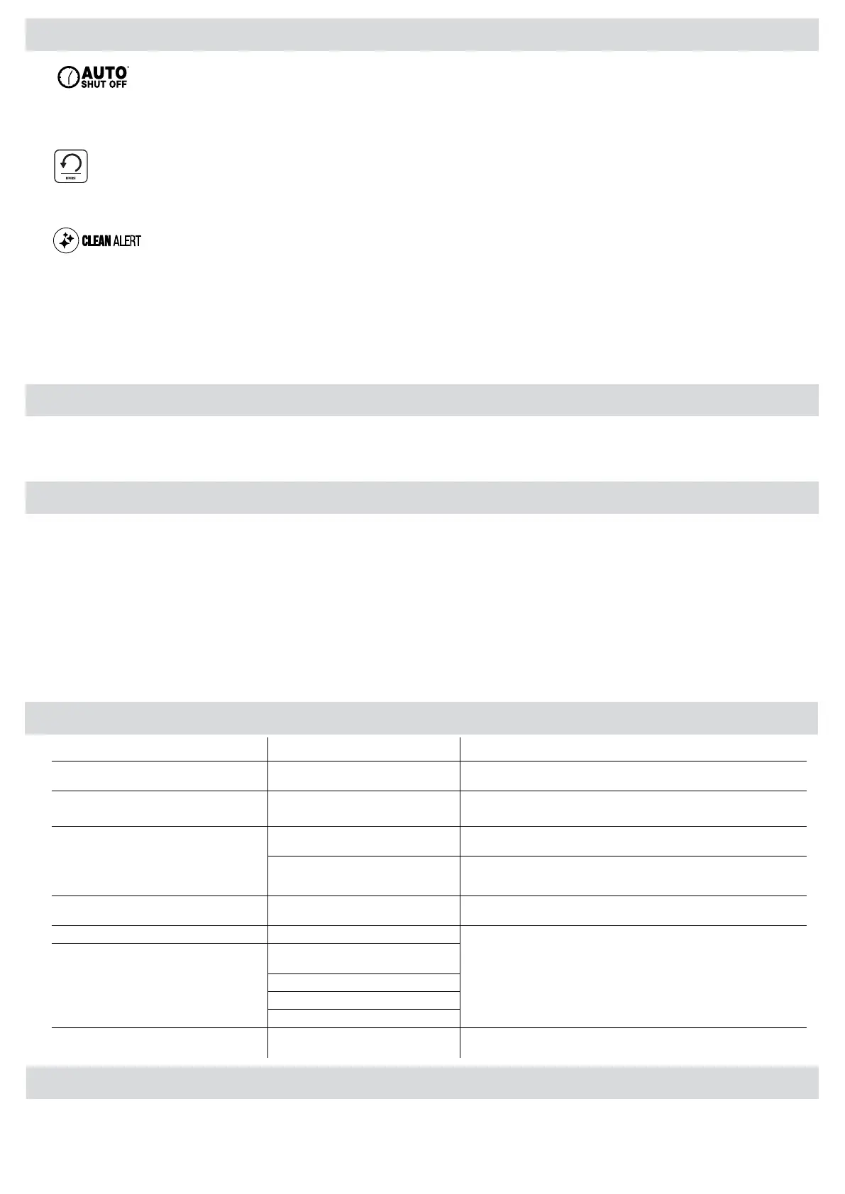 kann mit einem feuchten Tuch gereinigt werden. Verwenden Sie zum Reinigen des Geräts keine Lösungsmittel oder brennbare Materialien. Dieses Gerät ist mit einem „Reinigungswarnsystem” ausgestattet,