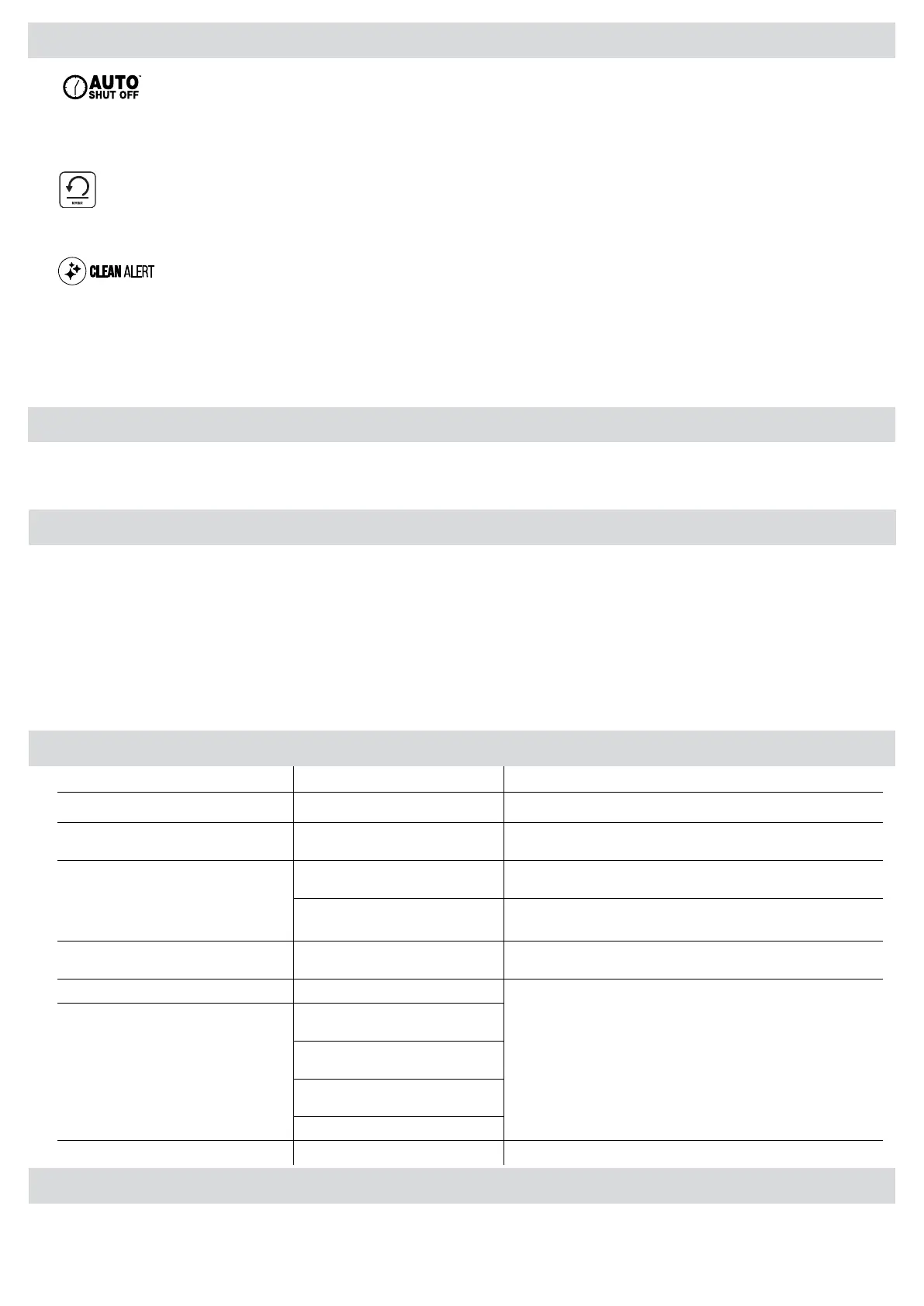 • Il pulsante di avviso di pulizia si illuminerà di bianco per ricordare all’utente di pulire i
