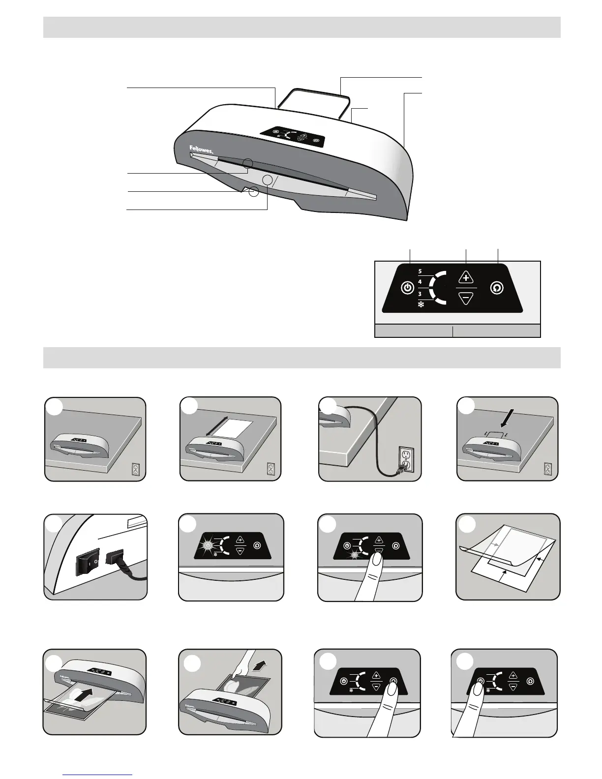 Fellowes Callisto 95 - Laminator Controls and Quick Start Guide; Control Panel Overview; Laminating Process Steps
