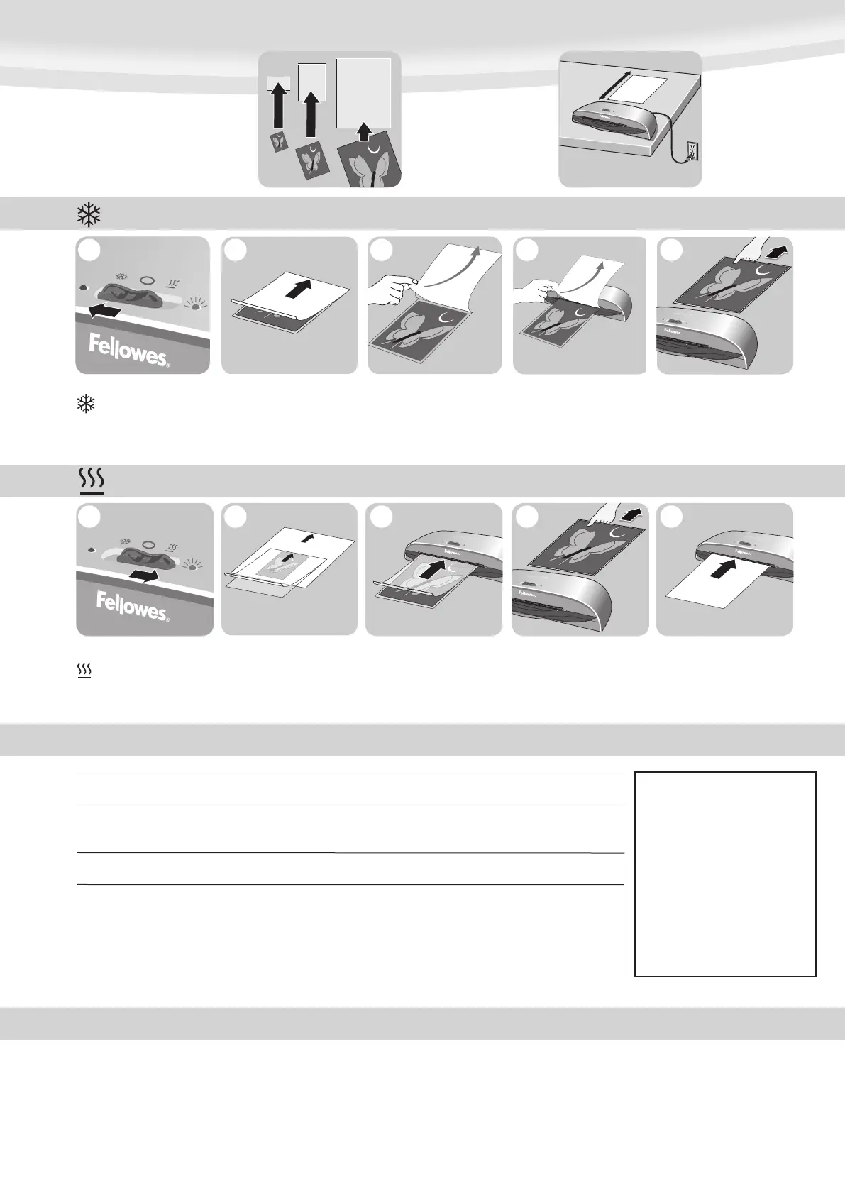 VIGYÁZAT: Csak öntapadó tasakokat használjon, amikor hideg beállítással laminál.