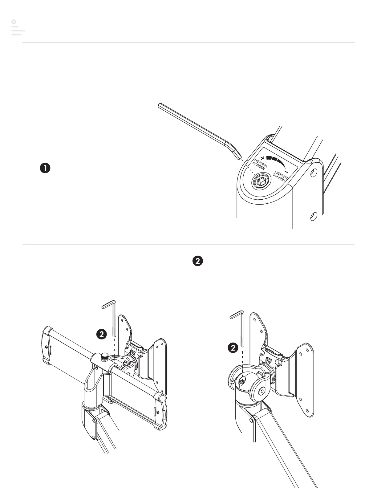 to the weight of the monitor. Twist the Allen key in a