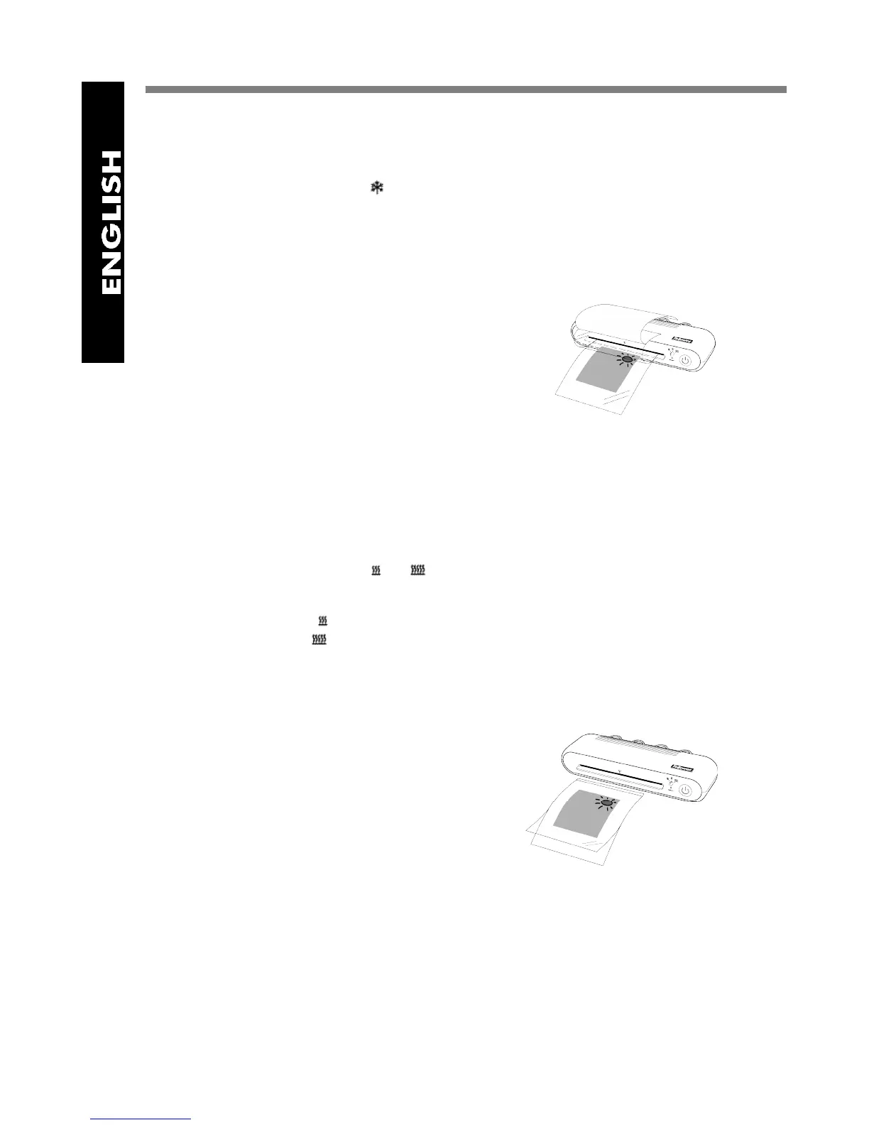 5 minutes to warm up and with the higher, one minute longer. When the laminator has