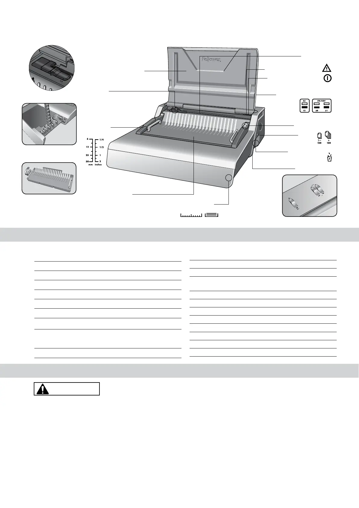 - siempre asegúrese de que la plataforma desmontable de encuadernación esté