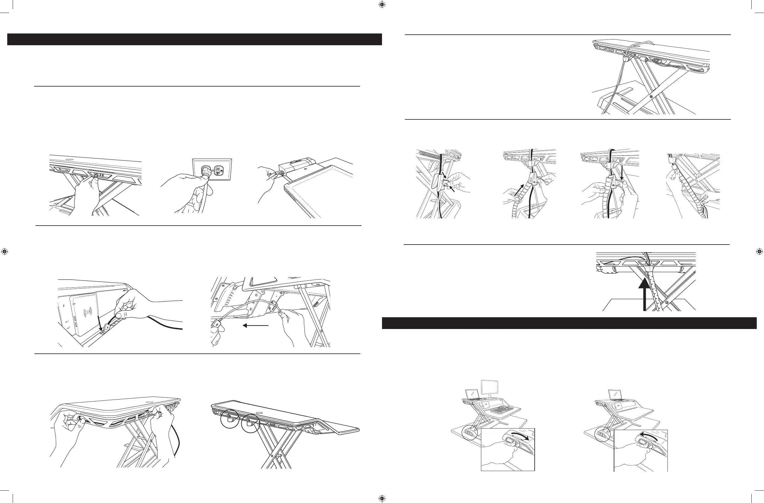 Ensure the workstation is at the highest position. Follow all cord routing instructions to ensure cables are not pinched by the support bars. Make sure