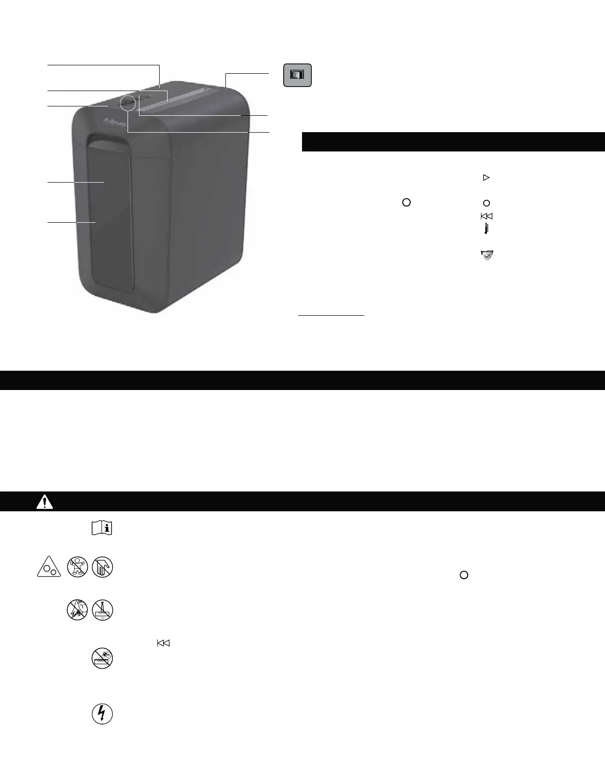 t Dieser Aktenvernichter verfügt über einen EIN/AUS-Schalter (F), der auf
