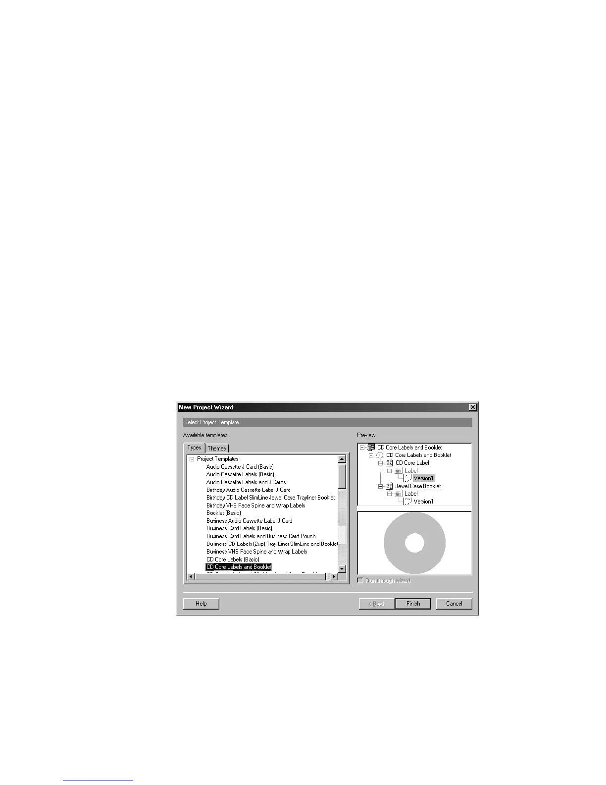 Selecting a project template is the first step in creating a label in MediaFACE® 4.01.
