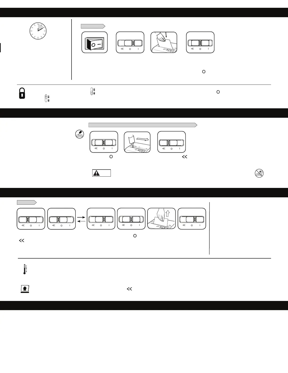 knap nedad. Skyd den sorte knap opad for at åbne låsen. For større sikkerhed, bør makuleringsmaskinen altid tages ud af stikkontakten efter brug.