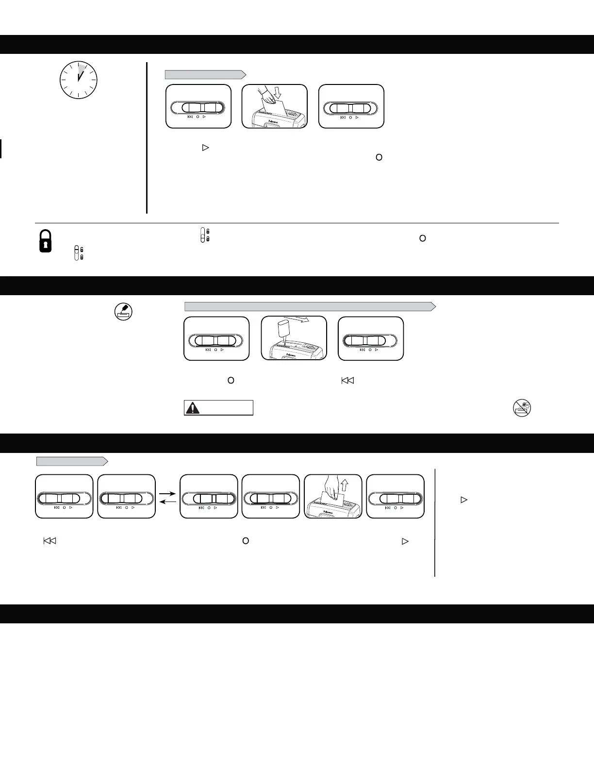 Per sbloccare fare scorrere nuovamente verso l’alto il pulsante nero. A garanzia di una maggiore sicurezza, dopo l’uso, scollegare sempre il distruggi documenti dalla presa di corrente.