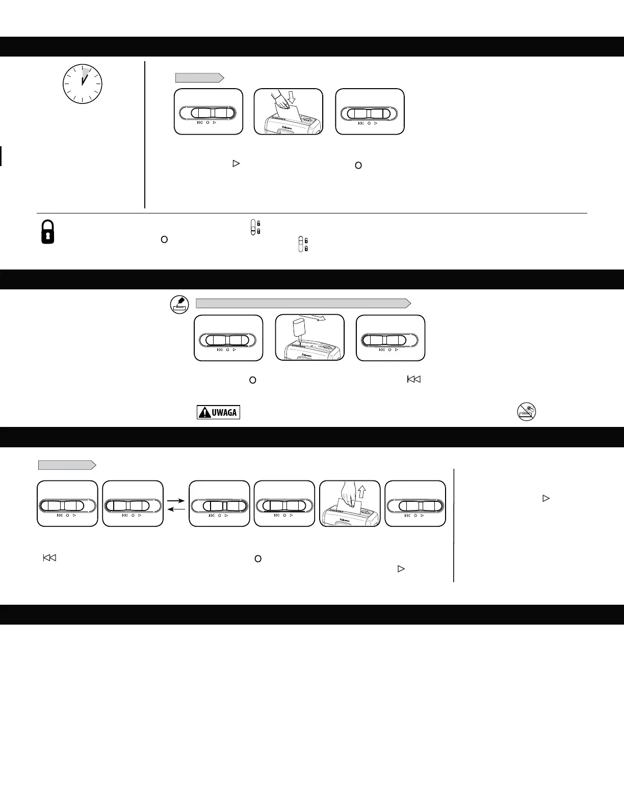 Blokada bezpieczeństwa zapobiega przypadkowemu uruchomieniu. Aby ją włączyć, należy odczekać na zakończenie niszczenia, ustawić przełącznik