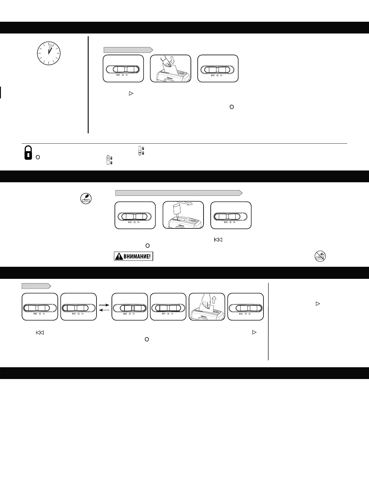 ), затем передвиньте черную кнопку вниз. Для отпирания переместите черную кнопку вверх. Для большей безопасности всегда выключайте уничтожитель из розетки