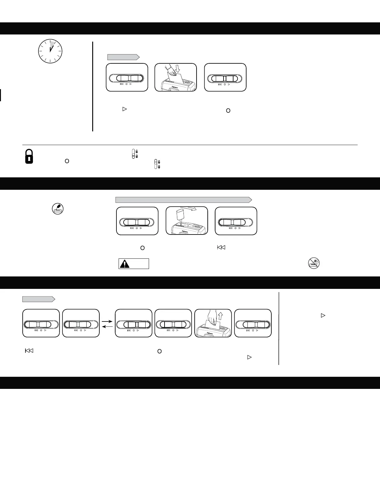 ) a následně přesuňte černé tlačítko směrem dolů. Pro odblokování přesuňte černé tlačítko zpět nahoru. Z bezpečnostních důvodů skartovací