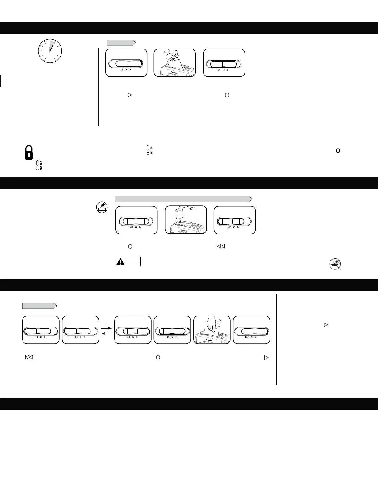Za otključavanje, kliznite crni gumb prema gore. Zbog sigurnosnih razloga uvijek izvucite kabel za napajanje iz zidne utičnice nakon uporabe uništavača dokumenta.