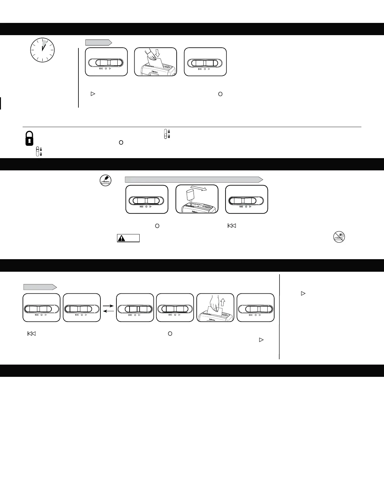 Da biste otključali uređaj, povucite crno dugme nagore. Iz bezbednosnih razloga, utikač uništavača uvek izvucite iz mreže napajanja.