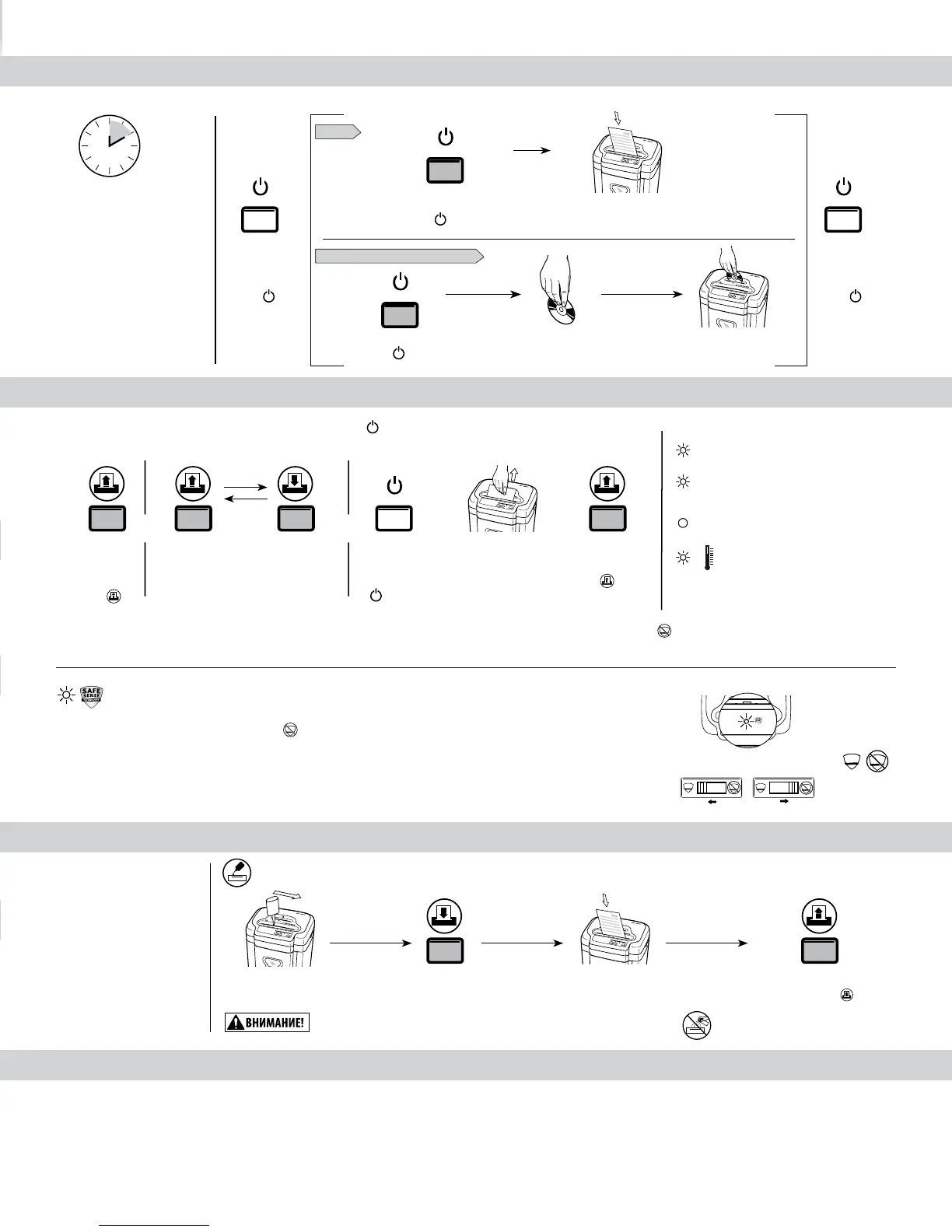 гореть), что наводит пользователя на мысль о возникновении в уничтожителе затора бумаги при отсутствии