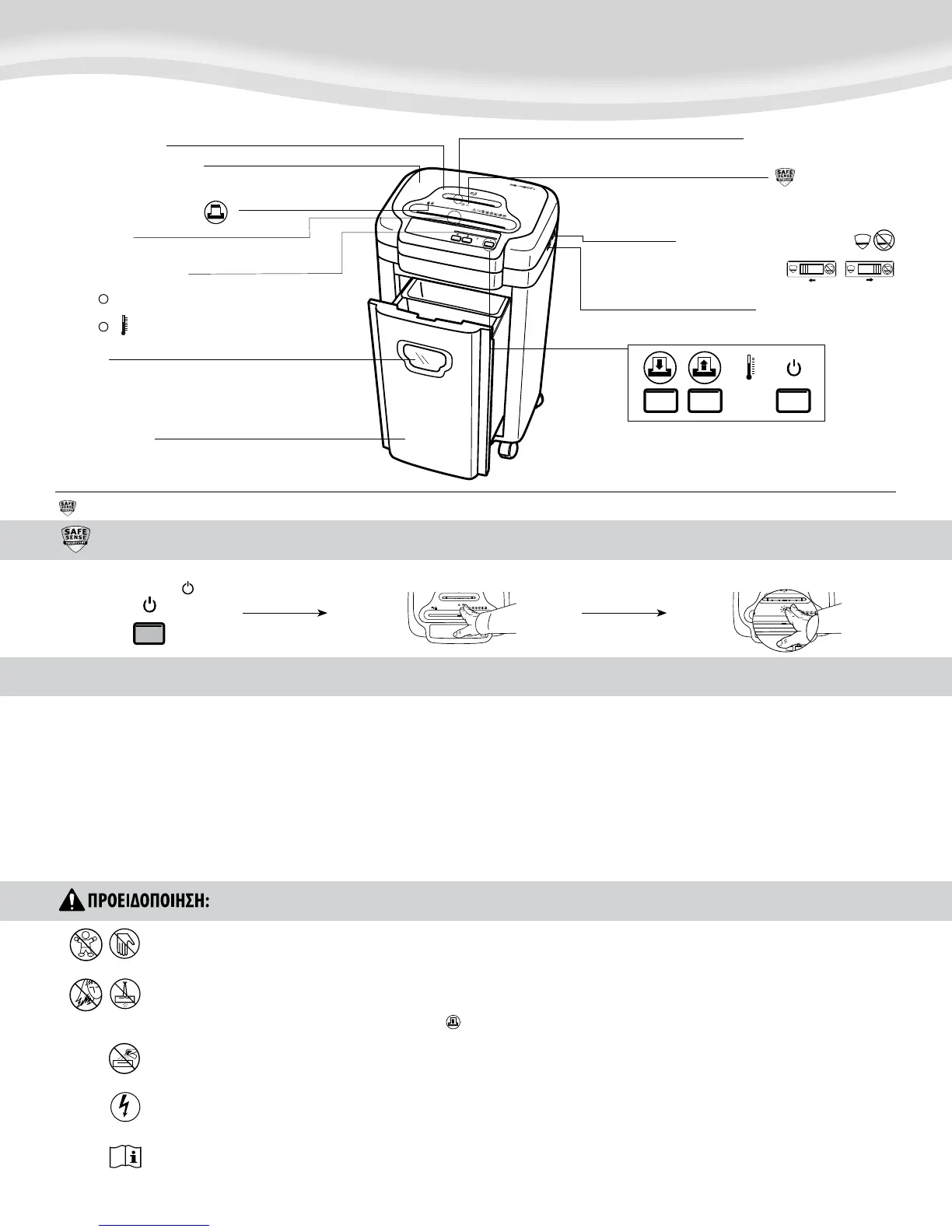 • Αυτός ο καταστροφέας διαθέτει διακόπτη αποσύνδεσης ρεύματος, ο οποίος πρέπει να είναι