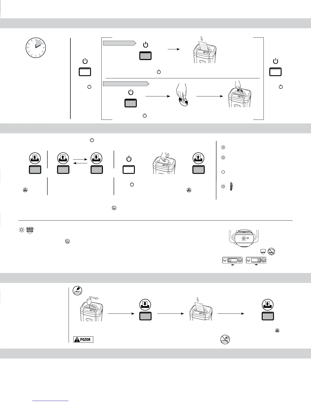 Zaseknutie papiera: Skartovací stroj vypnite ( ) a vyprázdnite odpadovú nádobu. Vráťte hlavu na nádobu a riaďte