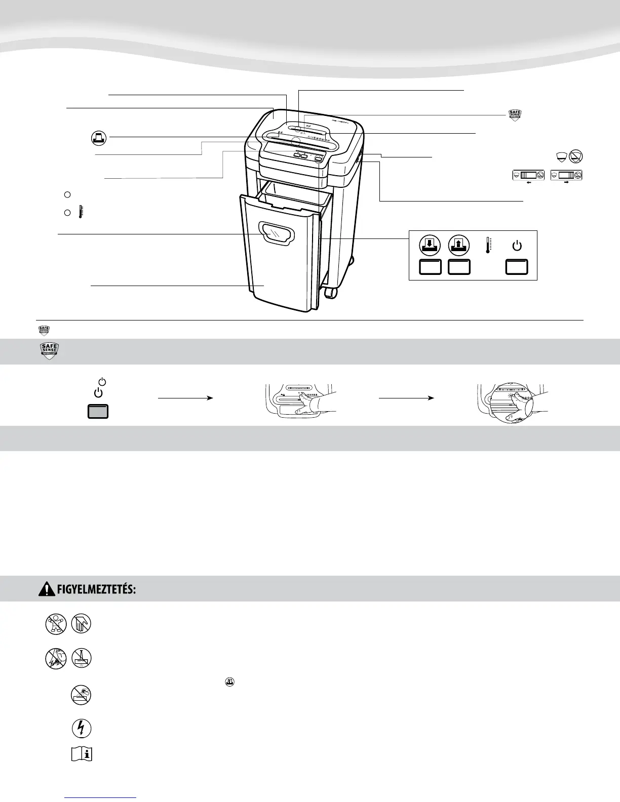 • Az iratmegsemmisítő gép teljesítménymegszakító kapcsolóval rendelkezik, amelynek a