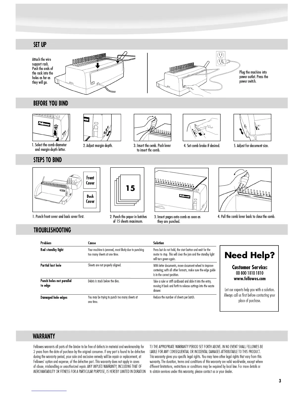 Fellowes PB 250E - Setup and Operation; Setup Guide; Binding Preparation; Binding Process