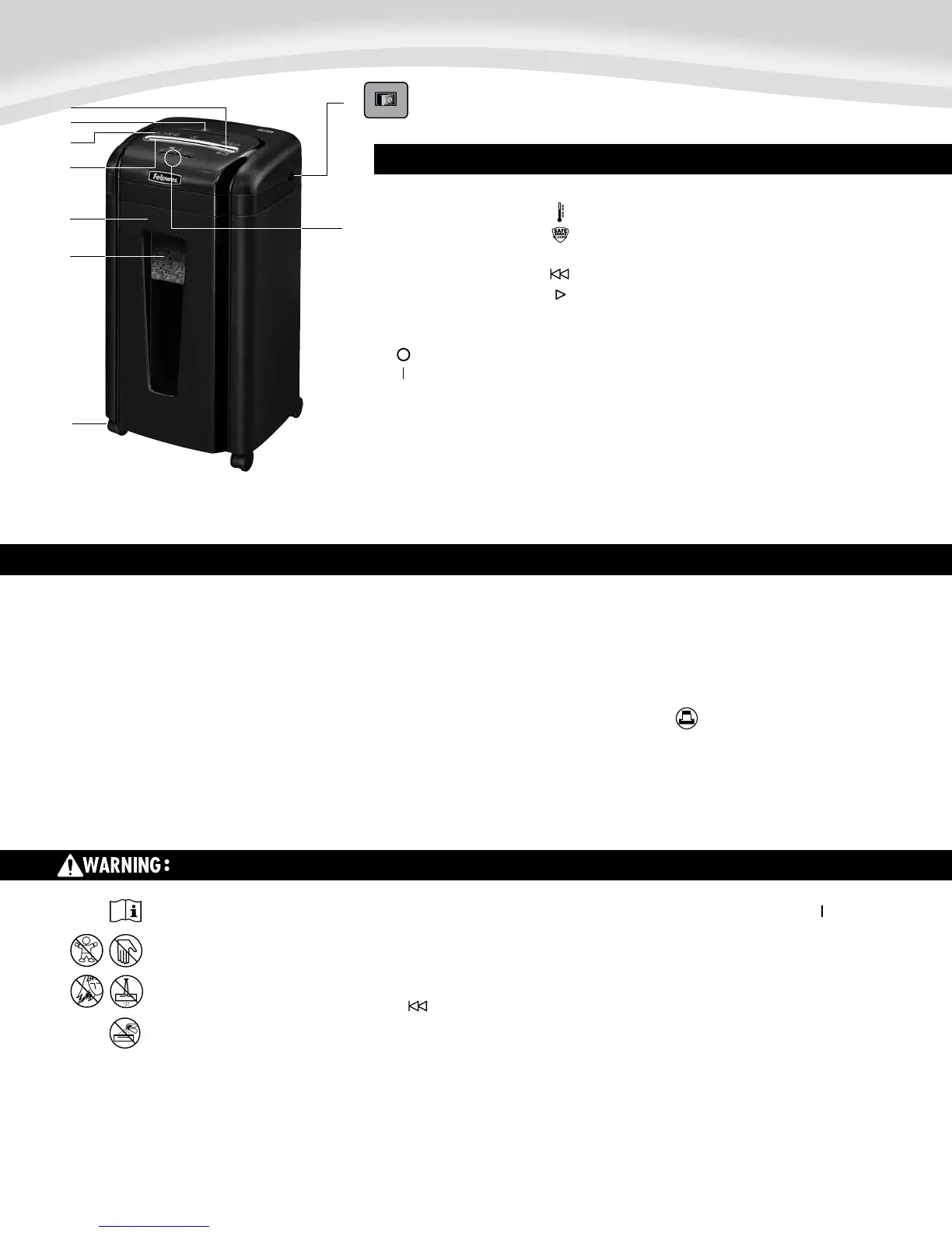 • Keepforeignobjects–gloves,jewelry,clothing,hair,etc.–awayfromshredder