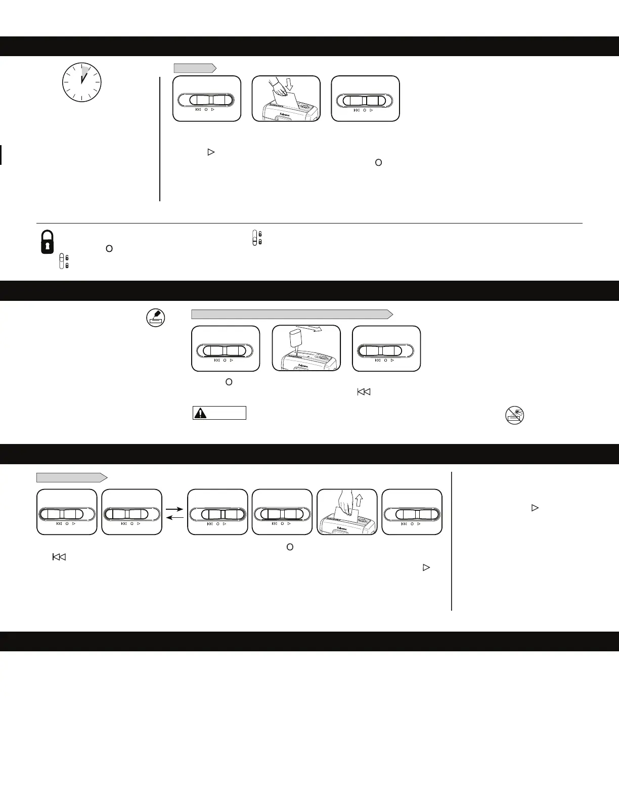 За да отключите, плъзнете черния бутон нагоре. За по-голяма безопасност винаги изваждайте захранващия кабел на шредера от контакта след употреба.