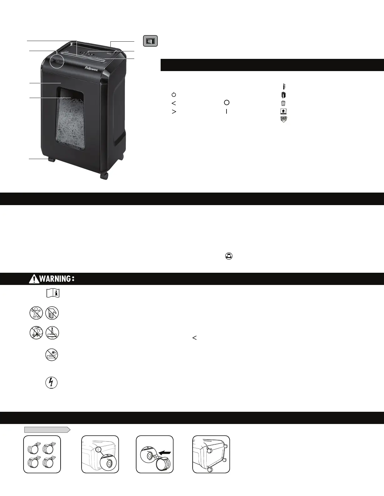 (I) position to operate shredder. In case of emergency, move switch to OFF