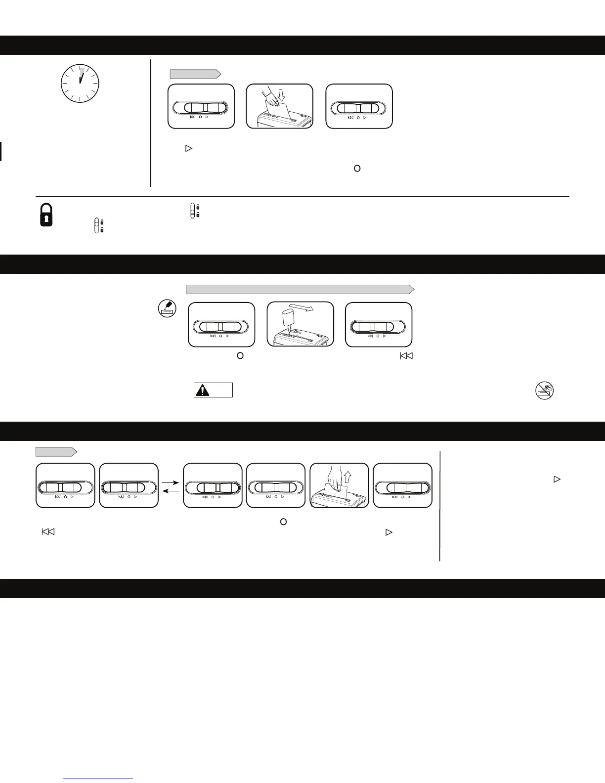knap nedad. Skyd den sorte knap opad for at åbne låsen. For større sikkerhed, bør makuleringsmaskinen altid tages ud af stikkontakten efter brug.