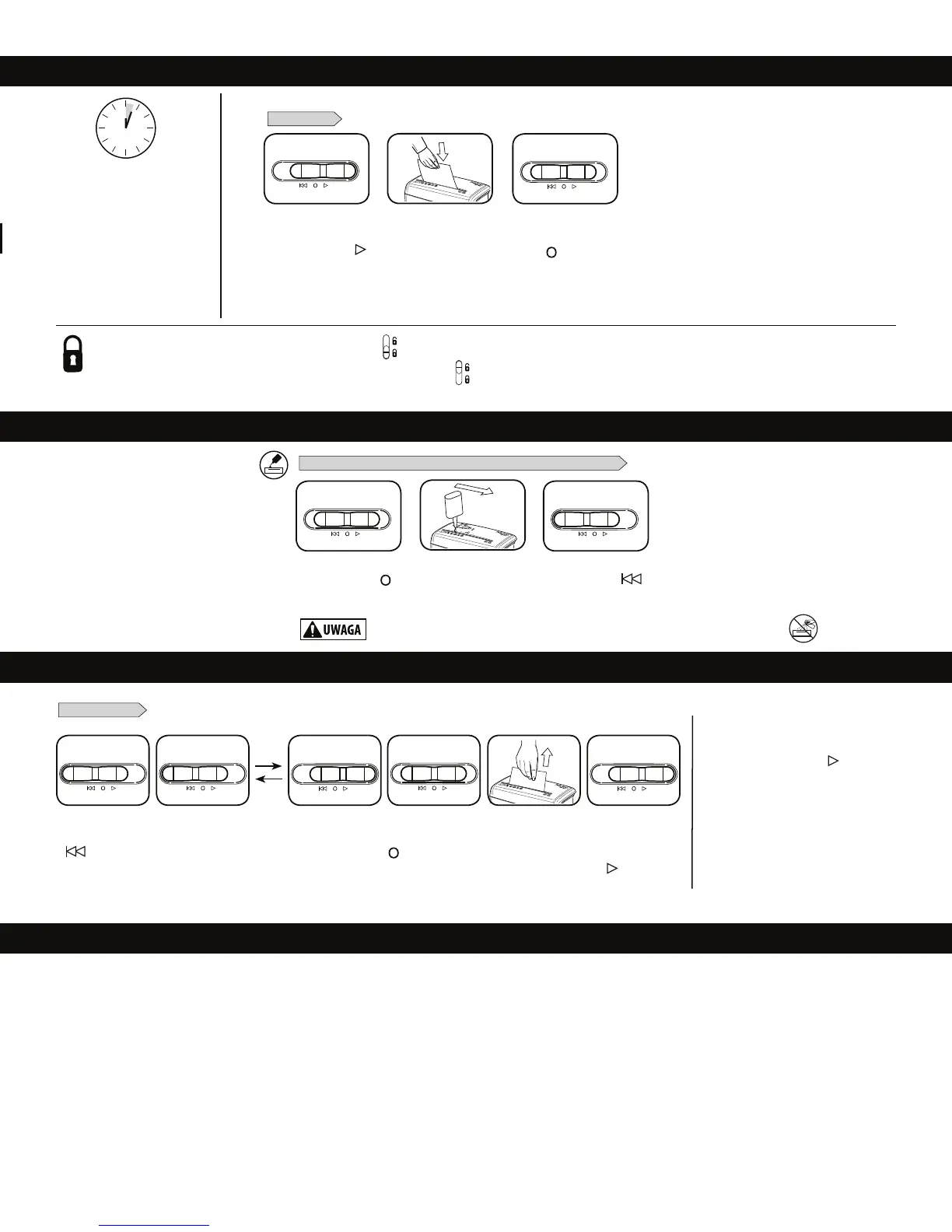 Blokada bezpieczeństwa zapobiega przypadkowemu uruchomieniu. Aby ją włączyć, należy odczekać na zakończenie niszczenia, ustawić przełącznik