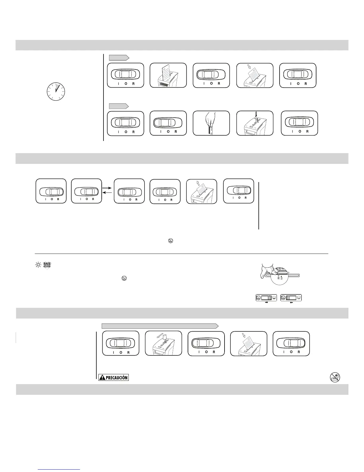 Papel atascado: apague (O), levante el cabezal de la destructora y vacíe la papelera. Cambie el cabezal de la destructora y siga todos o algunos de los siguientes procedimientos.