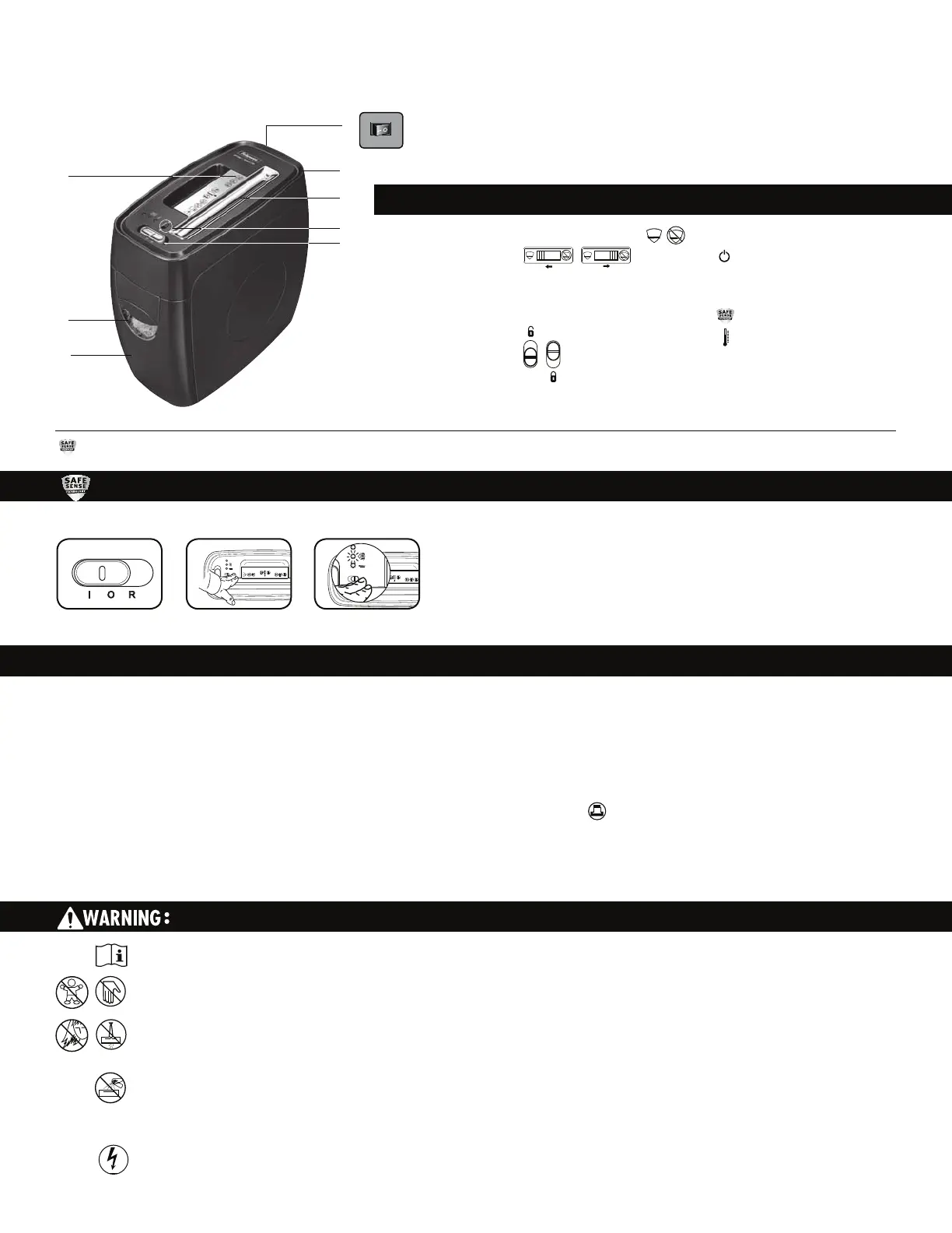 Shredder comes fully assembled. Remove basket packing material and plug in. Disconnect power switch must be in ON (I) position to operate shredder.