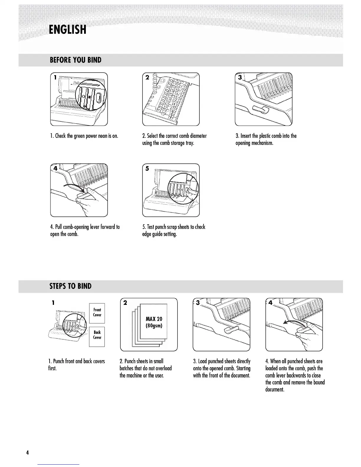 Fellowes Quasar E 500 - Before You Bind; Pre-binding Preparations; Steps to Bind; Binding Process