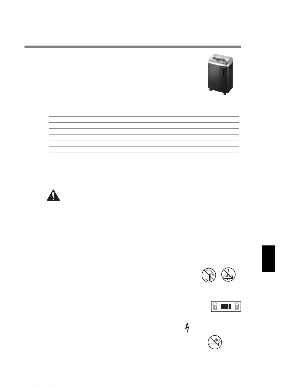 • Älä aseta paperinsilppuria lämpölähteen tai veden lähelle tai yläpuolelle.