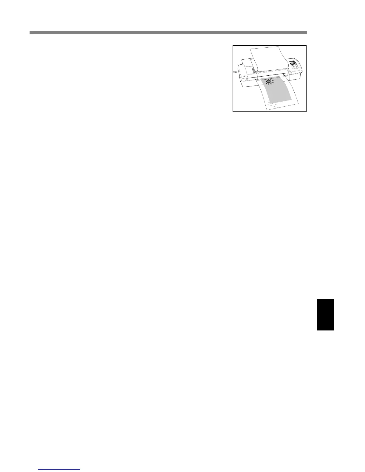 • Aseta tavallinen valkoinen paperiarkki sisään telojen puhtauden testaamiseksi.