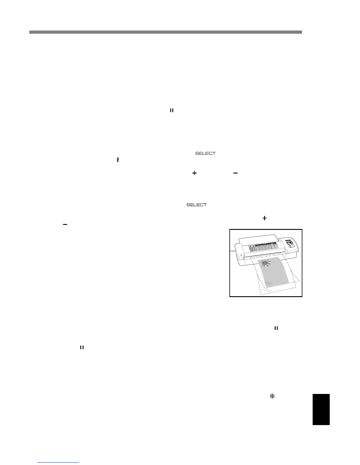 ▲, для того чтобы ролики начали вращаться (если ламинатор горячий, вы