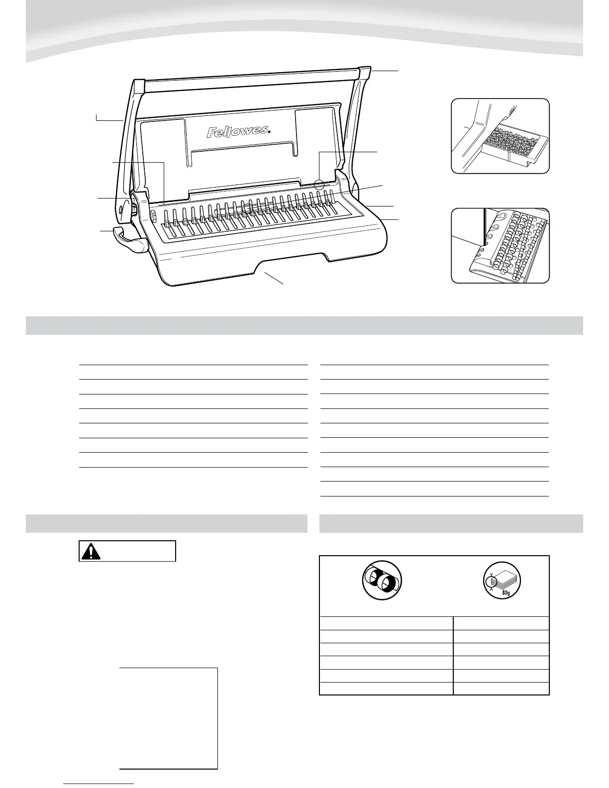 - testez la perforation sur des feuilles de rebuts et placez l’appareil avant de